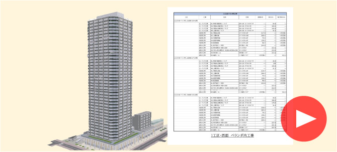 建物をコンピューター上に3次元で構築し、企画・設計・施工・維持管理に関する情報を一元化して活用する[BIM]を用いて、積算や修繕履歴など修繕に関する情報を集約します。